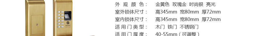 L1818F金色智能指紋密碼鎖技術參數: